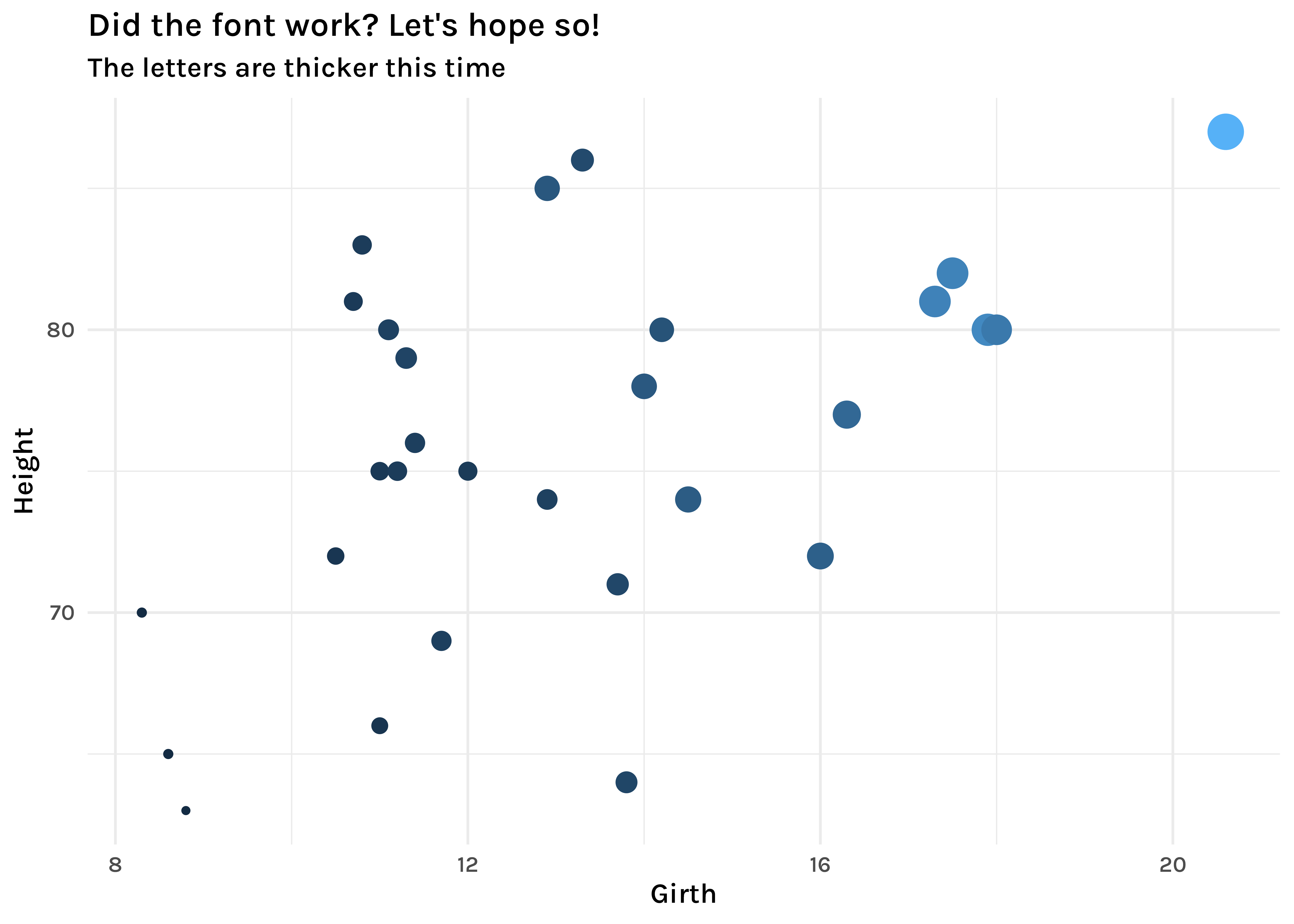 )This means I can then use this “Karla Medium” font for visualisations. See how the font is heavier than in the previous example.